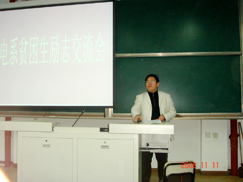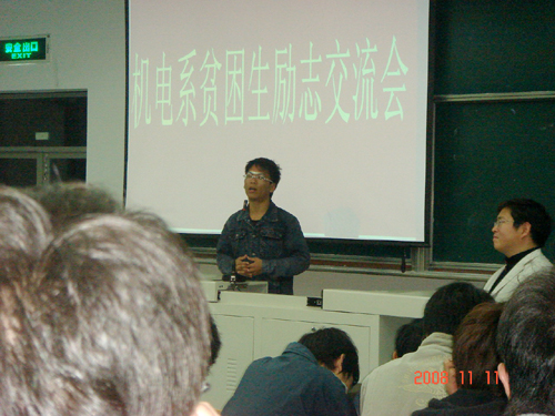 为鼓励贫困生正视当前的困境,引导他们自强不息、感恩进取, 会上,机电系辅导员首先说明了本次活动的宗旨和安排。随后学生代表发言,感谢国家和学校对他们的支持,并表示会努力学习,将来报效社会。 机电系领导对贫困生提出几点希望:一要正视当前的困境,走出贫困概念上的误区。二要自强不息,用知识改变前途和命运。三要放下思想包袱,学会自我调适。四要在享受贫困生特有权利的同时,要尽好自己的义务。另外还要求每位贫困生奉献社会,积极开展一学期20小时的义工活动。 会后,每位贫困生签订了励志成材、回报社会承诺书并观看了励志影片《上学路上》。 |