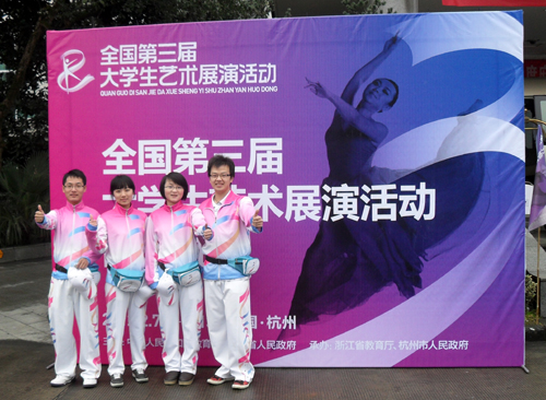 2月7日至13日,全国第三届大学生艺术展演活动在杭州隆重举行,我院陈晓武和教师教育学院余锋、方萍、杨晓岚4名学生获选志愿者,赴杭代表我校为本次大艺展提供志愿服务。 志愿者出征仪式于2月5日上午在浙江外国语学院隆重举行。出征仪式上,组委会秘书长、浙江省委教育工委书记、省教育厅厅长刘希平向志愿者代表授旗;执行秘书长、省教育厅副厅长鲍学军向在场的志愿者作动员讲话。