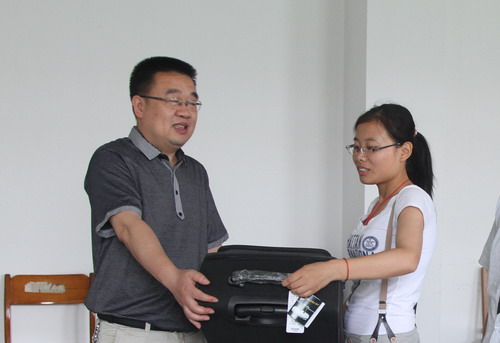 送行仪式上,学院党总支副书记程旭惠对志愿者投身西部建设的大爱精神给予了充分肯定,并希望他们做好面对艰苦的环境的思想准备,要虚心学习、甘于奉献,在基层工作中锻炼,在向人民群众学习中锻炼,在丰富的实践中锻炼,努力成长成才。 三位志愿者表达了对母校的感激之情,纷纷表示一定会秉承母校“立心力行”的校训,进一步发扬志愿者精神,在西部的舞台上,虚心学习,扎实工作,运用所学知识为西部建设奉献一份力量,为母校争光。 最后,程旭惠书记代表学院向志愿者分发了纪念品,并强调无论志愿者们走到哪里,母校都是他们坚强的后盾,祝愿他们在新的岗位上工作顺利,捷报早传。