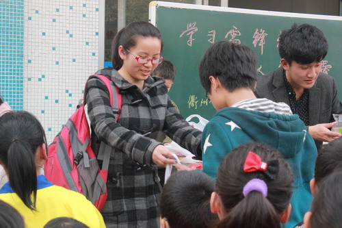 为了帮助他们尽早实现心愿,我院分团委在全校开展了“凝聚每份爱,点燃颗颗心”微心愿认领活动,得到了全校师生的积极参与,短短1个小时不到的时间,38个心愿被认领一空,领不到心愿的老师同学还纷纷捐款捐物。 3月12日,我院分团委带领志愿者们再次前往聋哑学校,将收集好的心愿礼物送到聋哑儿童们的手中。收到礼物的孩子们无比兴奋,用手语比划、用艰难的发音表达着对志愿者们的感激之情。