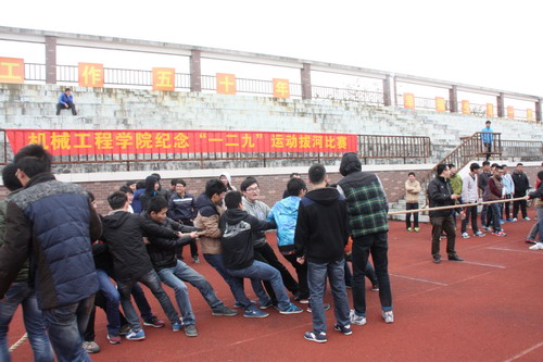 为纪念一二•九爱国主义学生运动79周年,弘扬爱国主义精神,推进大学生“走下网络、走出寝室、走向操场”活动,切实增进团结意识、增强大学生体质。我院于12月9日下午在操场举行了拔河比赛。