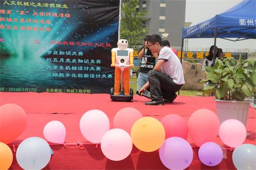 本届“机电之光”科技文化节以“立创新精神、学专业知识、做时代机械人”为主题,旨在通过举办“机电之光”科技文化节系列活动,进一步培养学生的创新实践能力和创新创业意识,提高学生的人文素养,丰富学生的课余文化生活,实践我院“文化育人、创新育人、专业育人”的理念。现场演示的小型发电机、DIY航母模型、“未来天使”智能机器人与无人机空中悬停等科技作品的演示引起了同学们的浓厚兴趣,彰显了机械学子的青春与活力。