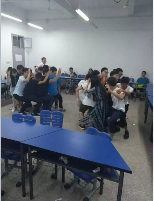 第三站:教学楼 夜幕降临,自习教室灯火通明,原来新生正在班主任与班助的带领下,召开大学第一次主题班会“团体破冰”,时不时传来阵阵笑声。
