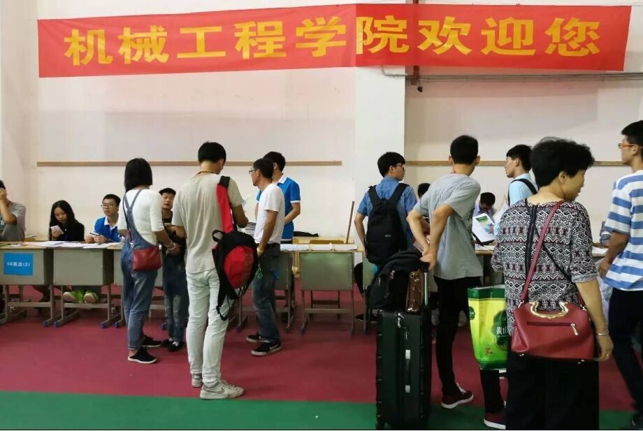 报到点第一站:球类馆报到点 整理好行囊,来到学校,到达室内体育馆的报到点,新生们会在这里拿到校园一卡通,银行卡等必备物品,办理相关的入学手续。 拥挤的人群中,最显眼的莫过于“各司其职,各尽其责”的班助,他们耐心地引导新生缴费、填表,入住,一遍又一遍,不厌其烦的给新生进行相关事宜的讲解,尽管很累,脸上依旧挂着笑容。 除此之外,学生党员和教师党员积极践行两学一做,参与到迎新工作当中来,为新生服务,并与新生家长们亲切的交流。