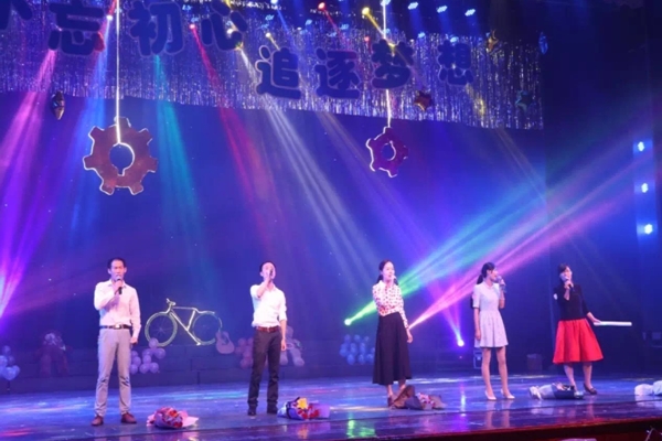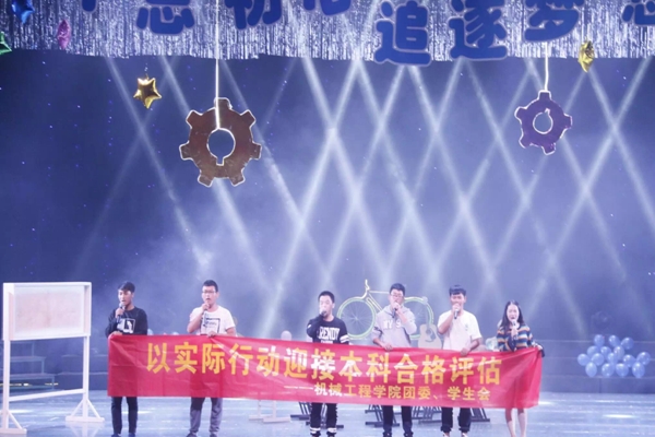 10月16日晚,437ccm·必赢国际2016年迎新晚会暨机械之星颁奖典礼在学校大礼堂圆满举行。校党委委员、宣传部部长吴新强,437ccm·必赢国际领导班子、新生班主任、学院教师与2016级全体新生共同观看了演出。 晚会以“不忘初心,追逐梦想”为主题,分为“梦引齿轩,聚首衢院”、“以心立梦,以力筑梦”、“以心立梦,以力筑梦”三个篇章,并结合学校本科合格评估的具体要求,以舞台表演和知识竞答的形式向全体同学进行了迎评动员和宣传。歌曲串烧动听悦耳,观众喝彩不断。舞蹈《Bang Bang Bang》优美飘逸,将现场气氛渲染的温馨欢快,让2016级新生充分感受到机械学院大家庭的浓浓情谊。小品《大学没那么简单》描述了一位因虚度时光,沉迷游戏而荒度学业的同学的心历路程,倡导优良的学风及积极的学习态度,勉励同学们以实际行动迎接学习本科合格评估。2016级新生班主任们表演的合唱《最初的梦想》,掀起了整场晚会的高潮,让同学们一睹机械学院老师们的青春、激情和阳光,更好地拉近了师生之间的关系。