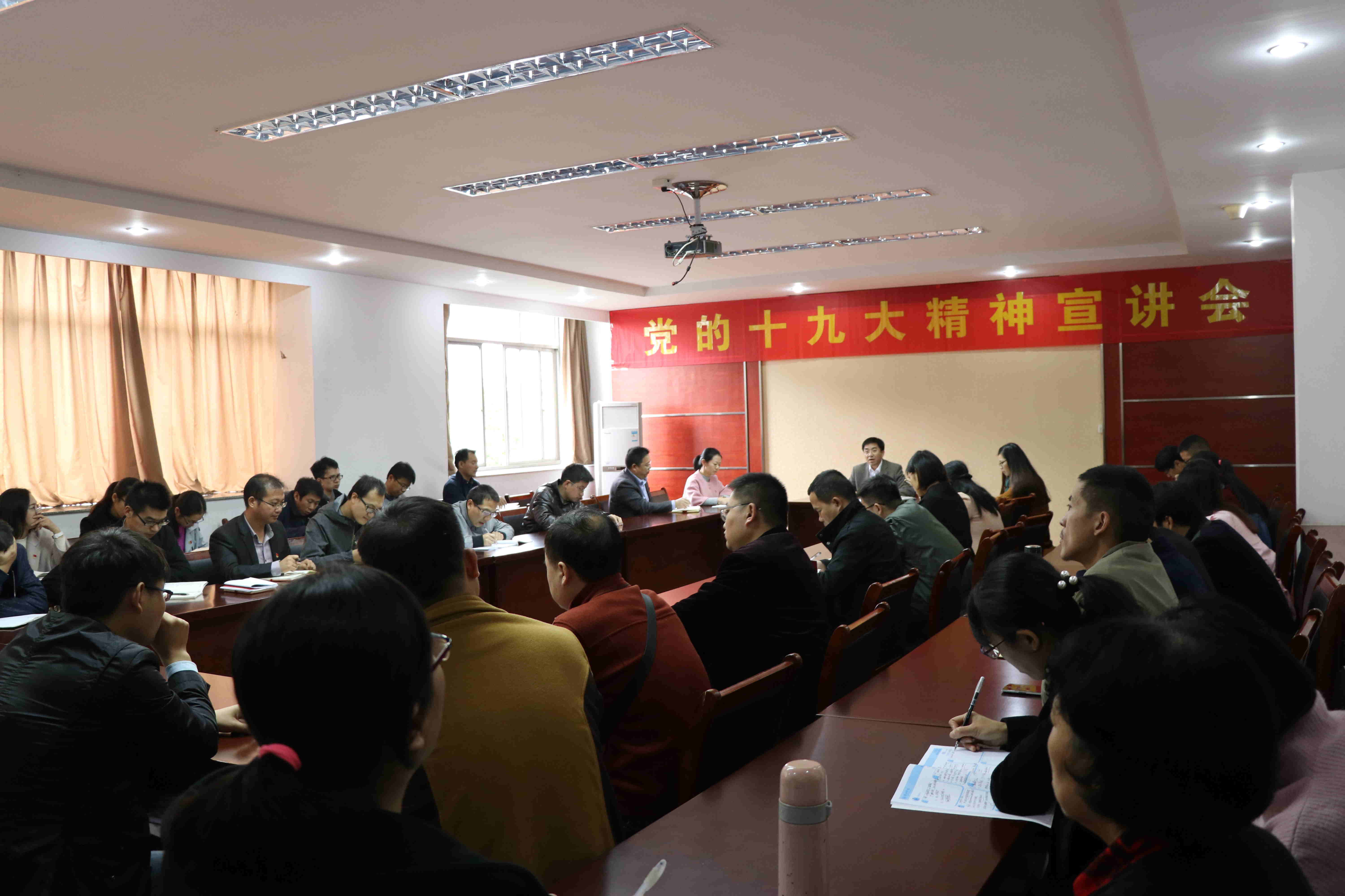 为深入宣传学习贯彻十九大精神,11月14日下午,胡伟校长到我院进行党的十九大精神宣讲。我院全体教师、学生党员代表60余人参加了宣讲会。 胡伟校长指出,中国共产党第十九次全国代表大会是全球关注、举世瞩目的一次大会,彰显了划时代的重大意义,发出了新时代的伟大宣言,确立了伟大复兴的行动指南,凝聚了拥戴领袖的精神共识。对于学习宣传贯彻党的十九大精神,胡校长强调必须聚焦到习近平新时代中国特色社会主义思想是我们党必须长期坚持的指导思想上,聚焦到五年来党和国家发生的重大变革上,聚焦到我国社会主要矛盾的变化上,聚焦到贯彻落实十九大精神的重大决策部署上,聚焦到习近平是全党爱戴、全民拥护的领袖上,同时要紧紧围绕习近平新时代中国特色社会主义思想这条主线,做好“七个讲清楚”,即讲清楚党的十九大的鲜明主题,讲清楚习近平新时代中国特色社会主义思想的丰富内涵,讲清楚党的十八大以来党和国家事业发生的历史性变革,讲清楚中国特色社会主义进入新时代的重大意义,讲清楚我国社会主要矛盾变化的深远影响,讲清楚“两个一百年”奋斗目标,讲清楚坚定不移全面从严治党的重大部署的,把广大干部群众的思想和行动统一到党的十九大精神上来。