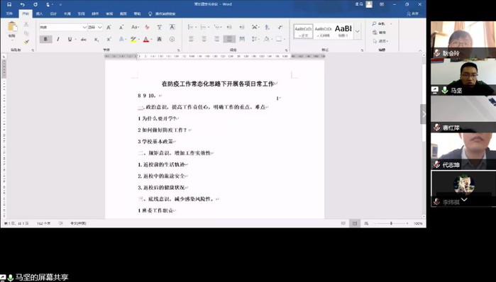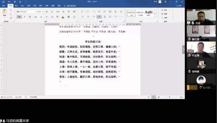 会议伊始,马坚老师首先强调防疫工作是本学期的重中之重的工作,要求所有工作要围绕着“防疫+”理念,同时强化“三个意识”,即“强化政治意识,提高工作责任心;强化规矩意识,增加工作实效性;强化风险意识,守牢防疫红线。”接着,马老师从依法防疫、依规防疫讲解了《中华人民共和国传染病防治法》有关章节、讲解了学生防疫口诀,讲解了突发应急处置方法。最后,马老师强调学生干部在学院开学返校后要发挥硬核带头示范作用,相信在全体师生的共同努力下,437ccm·必赢国际一定能顺利完成开学返校各项工作。
