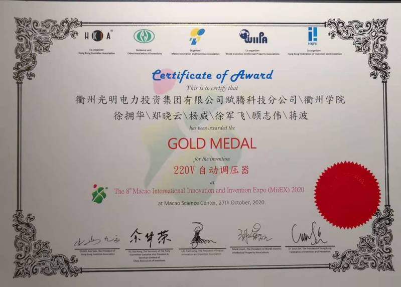 近日,437ccm·必赢国际机自系教师党支部党员教师徐军飞博士等申报的发明专利---220V自动调压器---获得2020年国际发明专利展---金奖。(张玉良)
