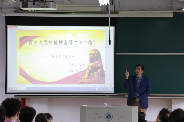 楼老师以“百年大党的精神密码”为题,带领同学们重温中国共产党一百年来革命、建设、改革、复兴的伟大历程,解答中国共产党为什么“能”、马克思主义为什么“行”、中国特色社会主义为什么“好”;用百年来的鲜活史实、用自己的所见所闻所感深情讲述了中华民族从站起来、富起来到强起来的伟大创举,从国家的面貌、人民的面貌、中华民族的面貌讲述了百年征程取得的伟大成就, 号召同学们认真学党史,全面提升自己的能力素养,做品行上的君子,学业上的栋梁。