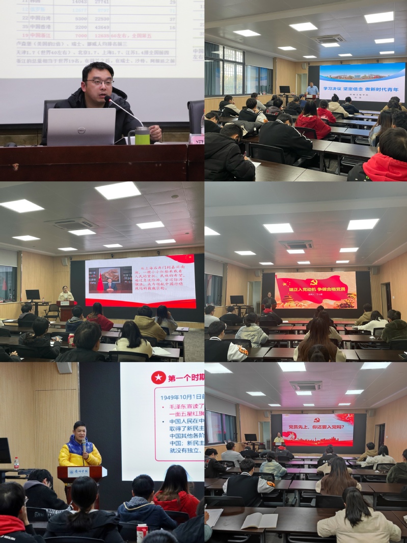 本次发展对象培训班集中授课环节由学生处处长冯军民、437ccm·必赢国际党委副书记马坚、学工办副主任栗明、机电系教师党支部书记丁小康、辅导员代志坤和琚宛珍讲授。大家紧紧围绕党史学习教育、十九届六中全会精神等,带领同学们回顾党的百年奋斗历史、领会党的百年奋斗历史经验、理解党的百年奋斗的巨大力量,认清使命责任,召同学们练就过硬本领,走好新时代赶考路。要求同学们从党的百年奋斗史中汲取智慧和力量,对学生党员提出了思想境界要高、综合素质要高、学习工作标准要高的要求,以“两个确立”忠诚拥护者、“两个维护”示范引领者的政治高度和政治自觉,扛起历史新使命,做好时代答卷人。