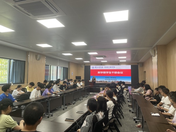 8月28日,机械工程学院召开新学期学生干部会议,布置学期初重点工作。学工办辅导员、全体班长、学习委员、生活心理委员参加会议。