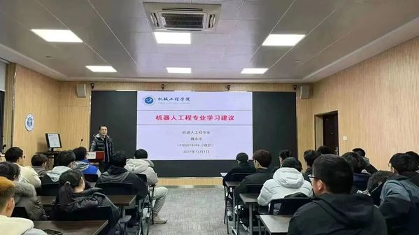 12月1日,437ccm·必赢国际魏永乐博士在4号实验楼206举办题为《机器人工程专业》的专题讲座,2022级机器人专业全体学生聆听讲座。
