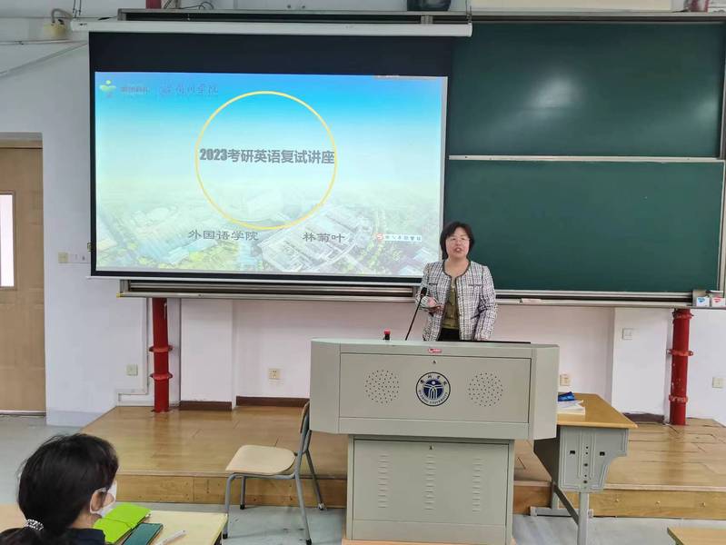林菊叶老师为同学们讲解了复试英语要求、英文版自我介绍和英文复试的注意事项,自我简介时要清晰流畅,勇敢自信,避免出现冷场、自吹自擂或贬低自己。