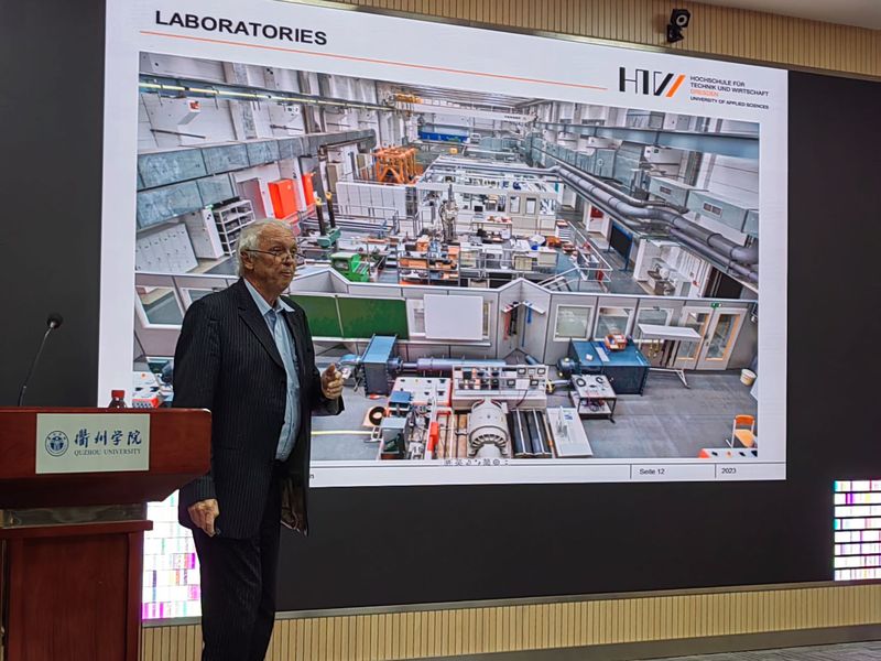 3月23日,德国数控专家曼·赫博纳教授来我院做交流讲座。曼·赫博纳教授现任浙江永力达数控机床有限公司总工程师。 曼·赫博纳教授以德国高等院校如何开展工程教育为主题作了专题讲座,以其之前所在的德累斯顿经济与科技应用工程大学为例,向我院教师介绍了德国高等工程教育模式。随后就其开展的德国马路清扫机的轻量化研究与大家进行了分享。