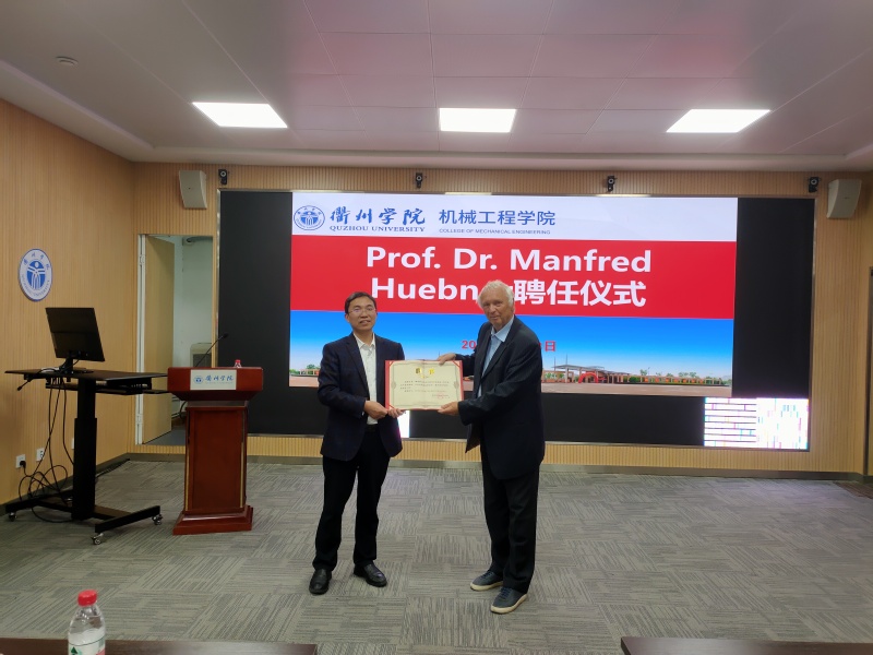 曼·赫博纳教授擅长大型多轴数控设备电气控制工程的研究与开发,主持开发出国际上技术水平领先的八轴联动加工直径18米的数控立式车床等大型数控设备产品,在多轴联动数控机床及其智能控制系统方面具有很深的造诣,是该领域的国际领军型人才。讲座结束后,机械工程学院周建强院长为曼·赫博纳教授颁发聘书,特聘曼·赫博纳教授为437ccm·必赢国际兼职教师,负责高端装备制造类(数控机床领域)教科研工作。