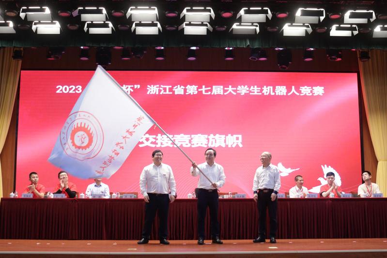 浙江省教育厅高教处副处长廖波、浙江省大学生机器人竞赛委员会秘书长毛一平致辞并莅临现场进行指导,裁判长代表和参赛选手分别发言,希望参赛选手们可以通过比赛学会“无中生有”、学会创新创造。