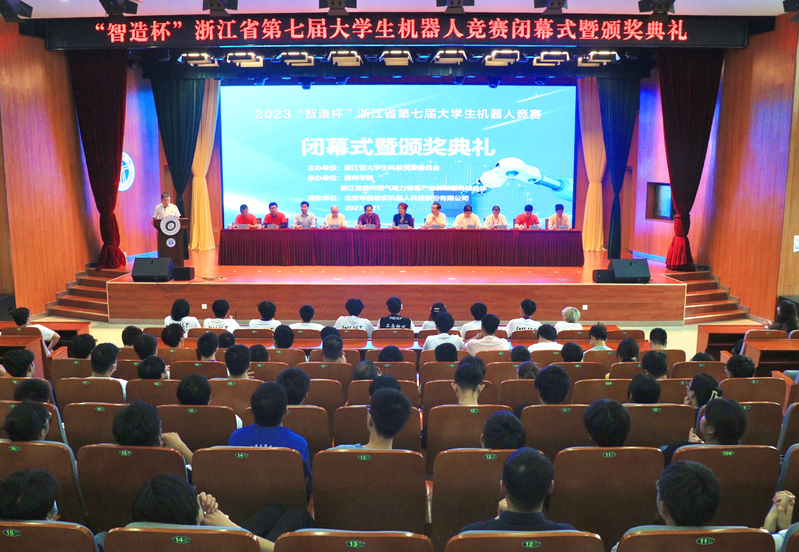 浙江省大学生机器人竞赛委员会和专家委员会主任、浙江大学本科生院院长张光新教授代表省大学生机器人竞赛委员会为闭幕式致辞,他指出,浙江省大学生机器人竞赛是培养和提高大学生多学科、多专业交叉运用和知行合一的综合性学科竞赛项目,要大力推进以赛促研,加强和拓展与社会、企业、研究机构的“产、学、研、应用”相合作,为企业、社会和国家培养高素质创新人才;要大力推进以赛促用,通过大赛的人才培养,使大学生心怀“国之大者”和工匠精神,为国家和社会建设作出更大贡献;要注重参赛后期的成果的总结和转化,知不足而后进,望山远而力行,提高青年学子的创意、创新和创造能力。