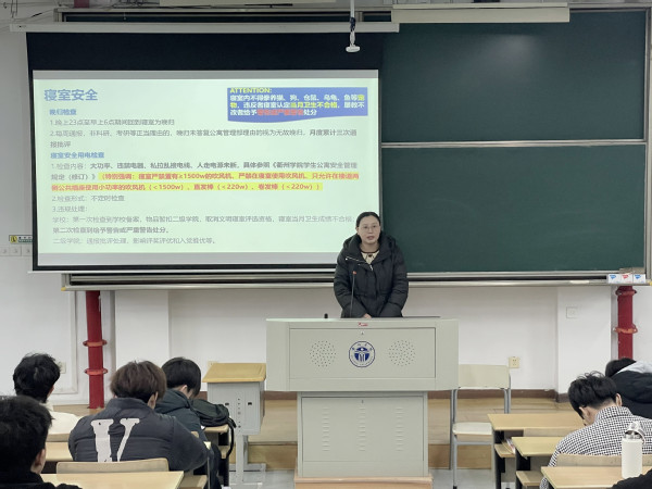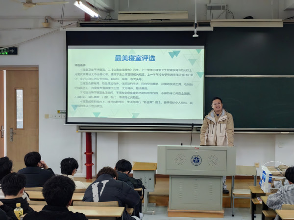 程雪翔就公寓卫生、公寓安全、公寓纪律、防范电信网络诈骗等方面与寝室长做了交流,并梳理了上学期学院违禁电器、安全隐患等方面的数据,强调公寓安全是重中之重,事关全体学生的生命健康,一定要严格遵守校规校纪,做好寝室安全排查,消除安全隐患。同时,要提高寝室卫生质量,提高卫生优秀寝室数量,减少不合格寝室发生率。要强化反诈意识,提高信息甄别能力,时刻保护自己的钱袋子。要加强公寓纪律建设,严格控制晚归频率,对无故晚归的同学进行月度通报批评。另外,程雪翔还布置了学期初公寓大扫除和校级最美寝室评选的相关工作,希望大家积极参加公寓活动,共同打造有礼公寓。