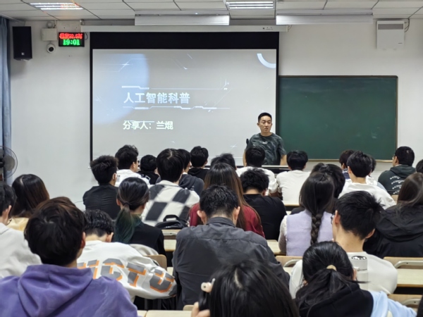 讲座伊始,兰焜分别从人工智能的起源、应用领域、关键技术、对人类社会的影响、发展趋势及人工智能未来展望等六个方面向同学们介绍了人工智能的概况,详细介绍了人工智能在医疗、金融、教育、交通等领域的应用,讲解了人工智能在为人们带来便利、提高效率的同时,也存在数据泄露等潜在安全风险,加深了同学们对人工智能的理解和认识。 随后,兰焜结合自己求学和工作的经历,从独立人格、做好本职、偏向侧重、提前准备等方面讲述大学期间如何加强专业学习,鼓励同学们做好大学生涯规划。
