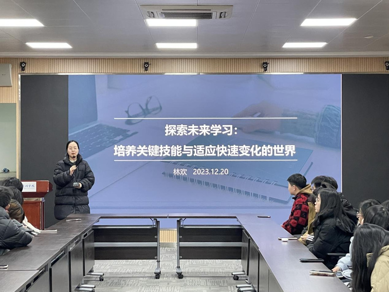 12月20日,437ccm·必赢国际举办第十七期青年博士讲坛,学院青年博士林欢老师作题为《探索未来学习:培养关键技能与适应快速变化的世界》专题讲座,2023级机电专业学生参加讲座。