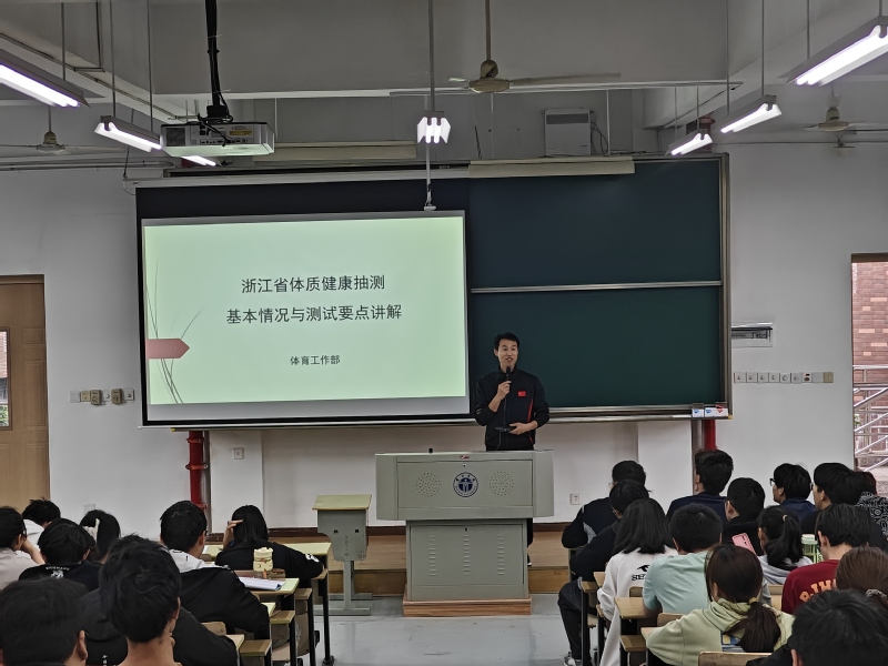 会上,毛圣力详细解读了体质健康测试的整体安排,包括抽测的具体时间、测试项目、训练具体要求以及测试要点。他强调,学校将严格按照浙江省体测要求和文件规定,精心制定科学合理的训练计划,为学生提供有针对性的体质锻炼指导,全面提升学生的身体素质和体测成绩。 彭珑珑鼓励各位同学认真对待体质测试,在体育老师的带领指导下开展训练,以体测训练为契机,加强身体锻炼,养成健康的生活方式。