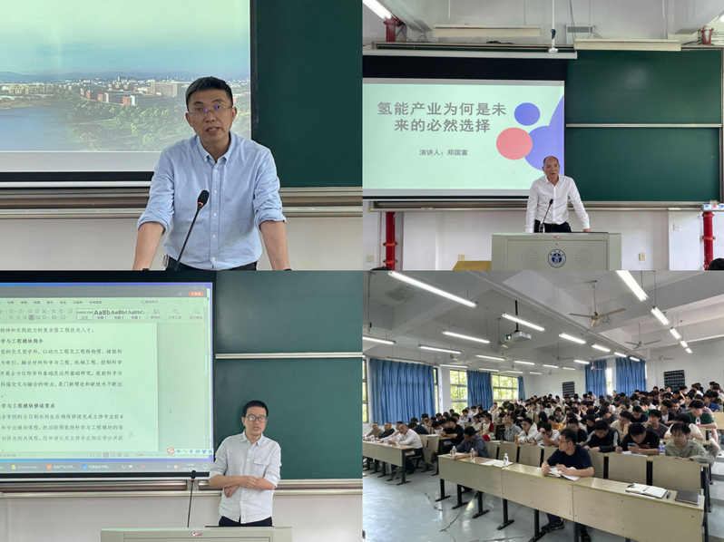郑国富进行招生宣讲。他指出,当前国际社会已经存在《关于消耗臭氧层的蒙特利尔议定书》《巴黎协定》等国际公约,而我国也在2020年提出了碳达峰碳中和目标,充分显示了清洁能源在工业领域的重要性。氢能源作为清洁能源的一种,将会是未来的发展方向。明深氢能源科技聚焦氢能,打造涵盖制、储、运、加、用五大应用场景示范基地,拓宽交通、电力、工业、健康等供应链,推进氢能标准化体系建设,助力四省边际中心城市建设。郑国富表示,公司将以此为契机,进一步整合院校企三方优势资源,为科教融合试点班的教学提供专业的企业导师团队和优质的学习实践平台,搭建科教协同育人载体,培养氢能源产业创新人才。